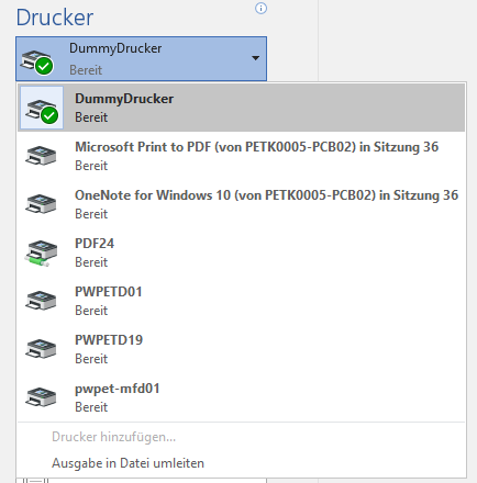 Das Drucken via «DummyDrucker» ist nicht möglich.