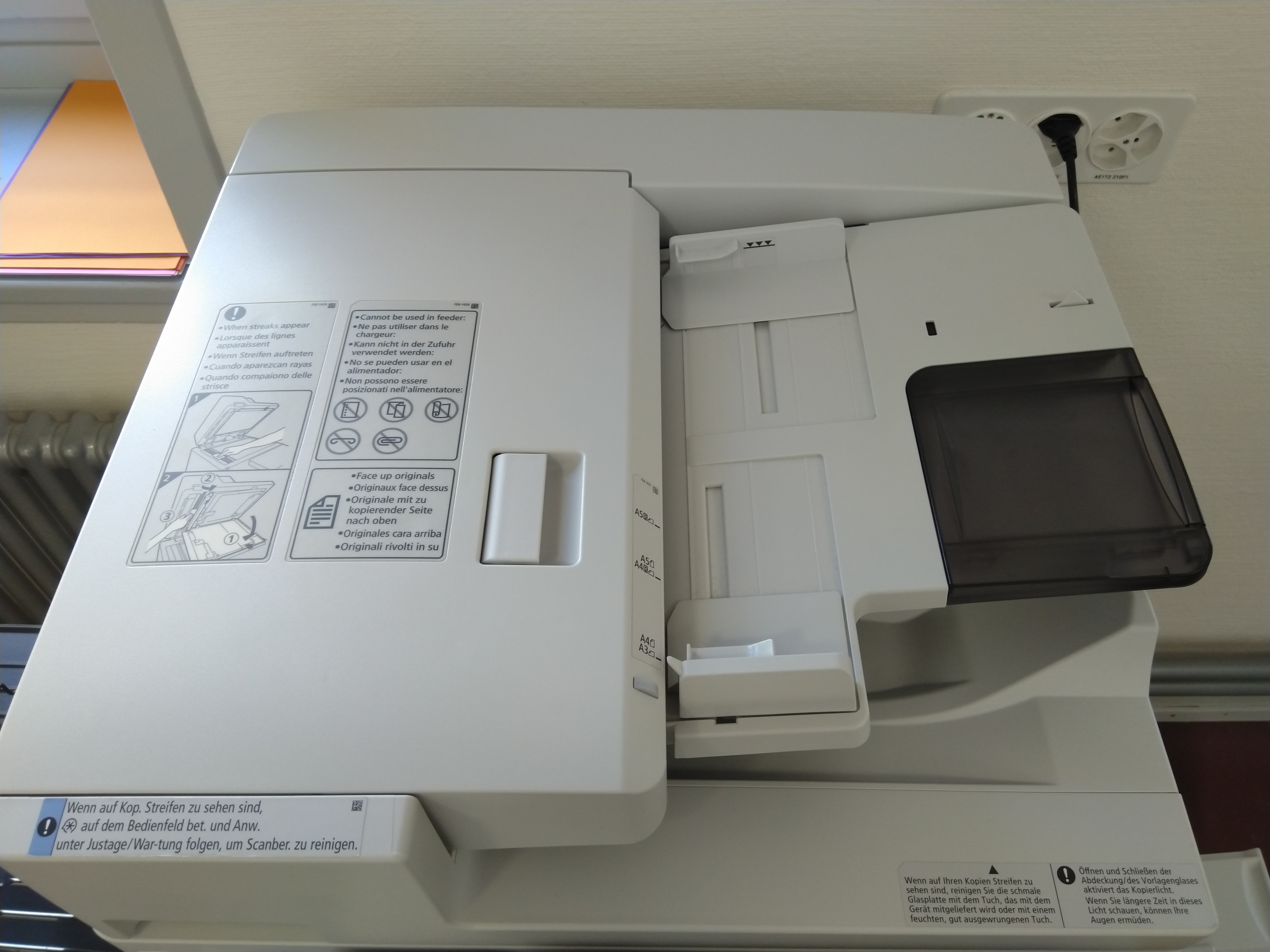 Primar- und Sekundarschulen sind mit einem sogenannten Multifunktionsgerät ausgestattet. Mit diesem Gerät können Sie Dokumente ausdrucken, lochen und heften, aber auch an E-Mail-Adressen scannen und Farbkopien anfertigen.