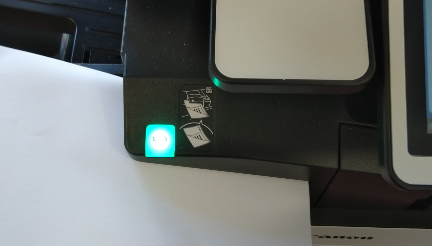 - Der Hefter beginnt grün zu blinken und heftet das Dokument automatisch.