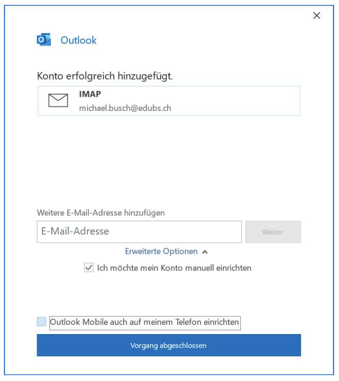 E-Mail ist fertig konfiguriert.