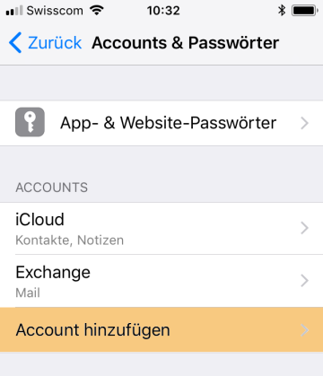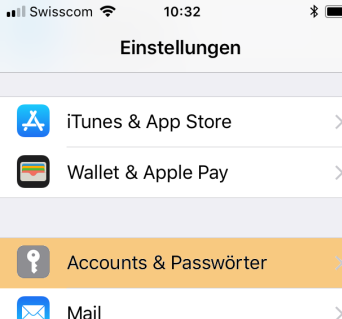 Gehen Sie in die «Einstellungen» --> «Accounts & Passwörter».