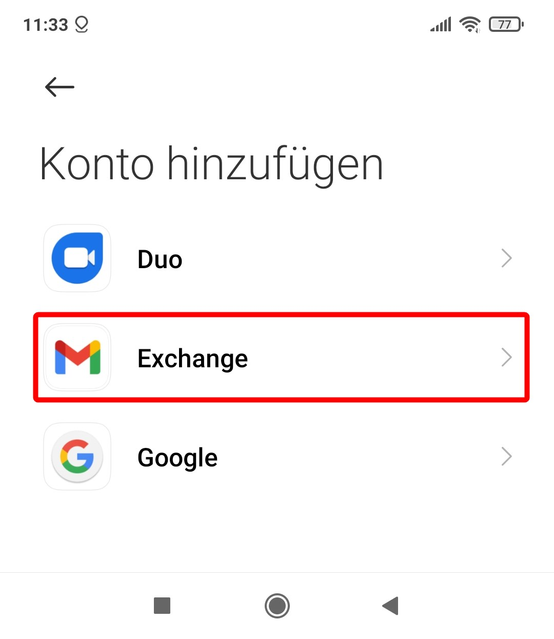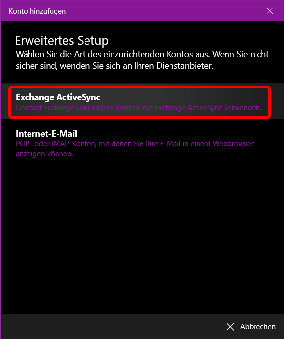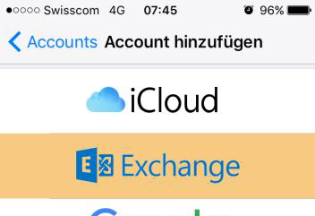 Wählen Sie «Exchange», respektive falls vorhanden «Exchange Active Sync».