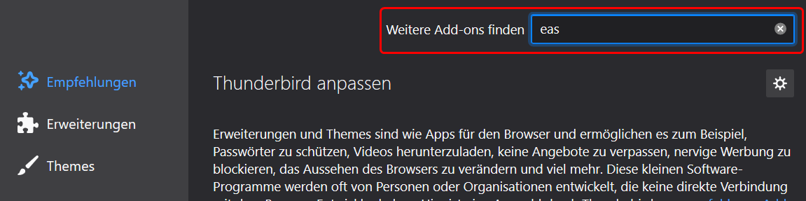 Suchen Sie nach «EAS» und fügen Sie anschliessend folgende Add-Ons hinzu: