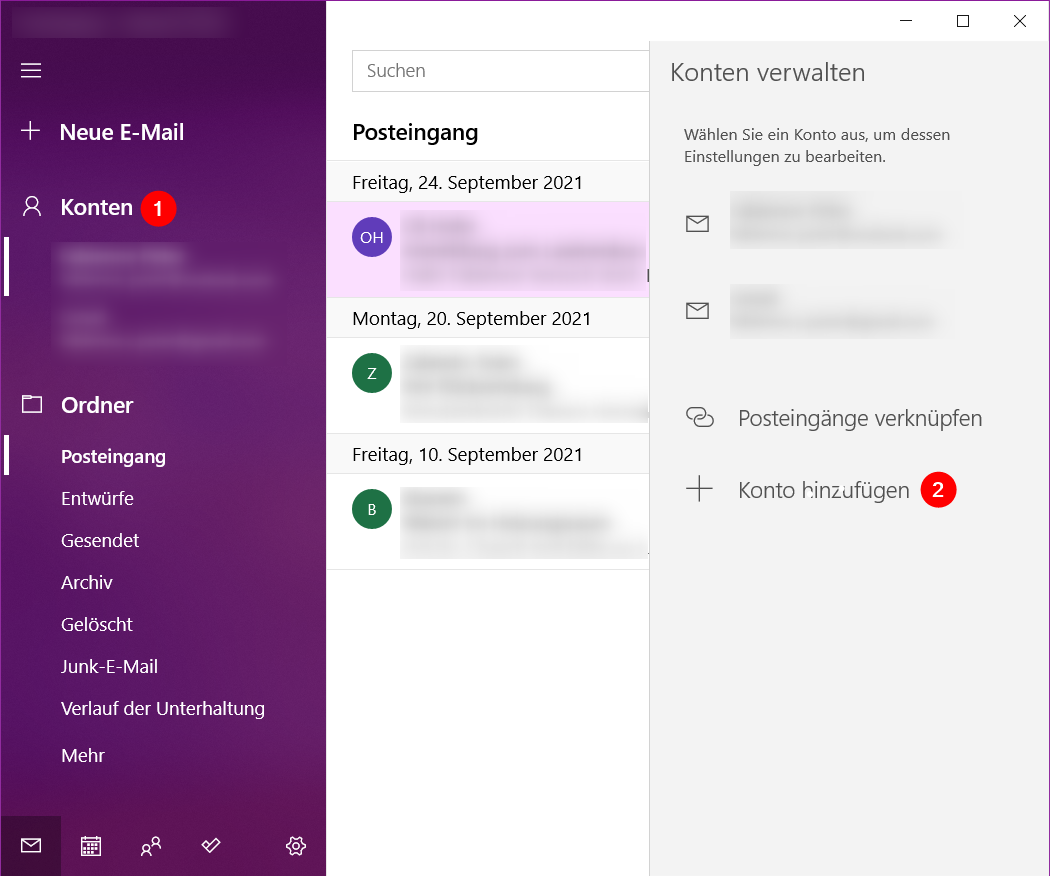 Konfiguration Windows Mail und Kalender