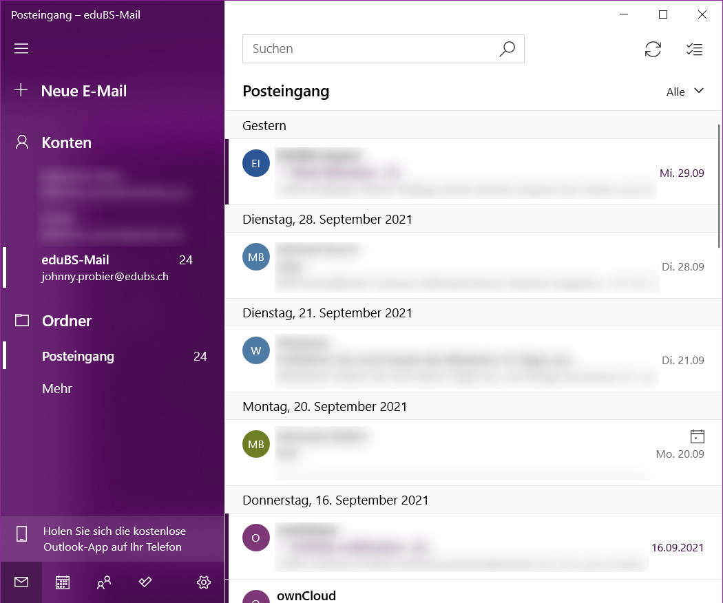 Möchten Sie eduBS-teamwork auf einem persönlichen Gerät in eine Mail-App (Mail-Client) einbinden, finden Sie hier entsprechende Anleitungen.