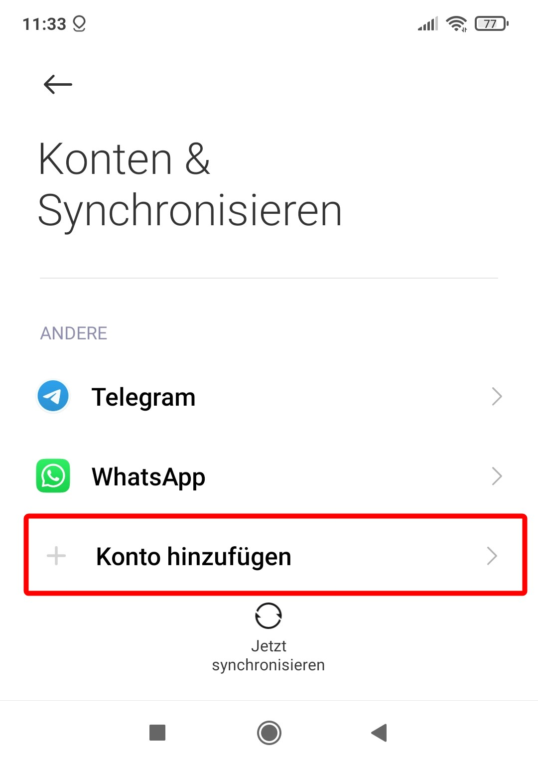 Wählen Sie «Konto hinzufügen».