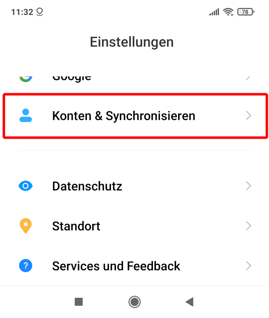 Öffnen Sie die «Einstellungen» und wählen Sie «Konten und Synchronisieren».
