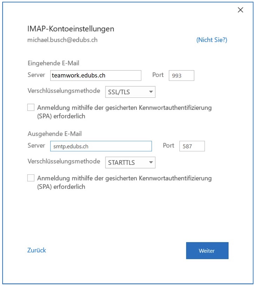 Serveradresse | smtp.edubs.ch | smtp.edubs.ch |