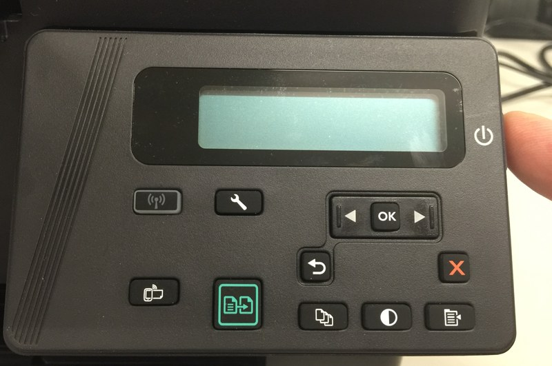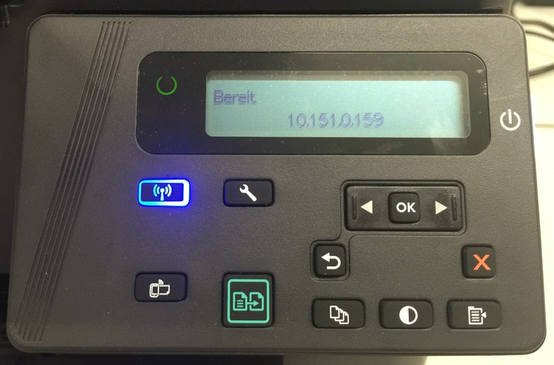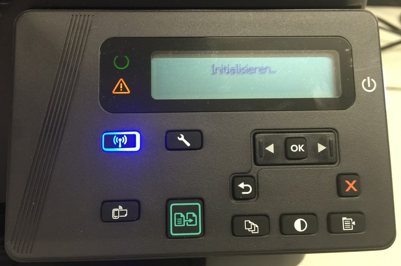 Drucker ist «Bereit». Das blaue WLAN-Symbol zeigt, dass der Drucker mit dem Netzwerk verbunden ist.