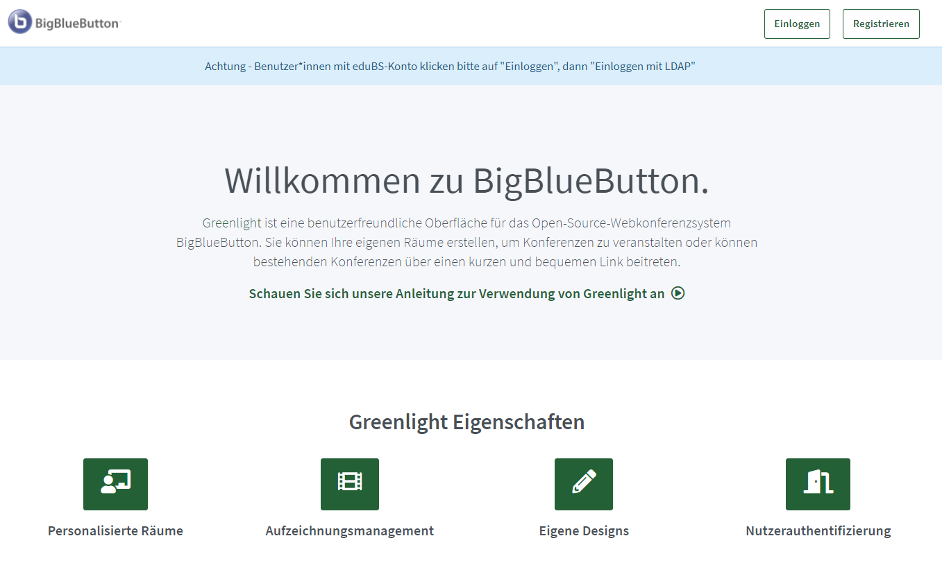 Auf treff.edubs.ch hast du die Möglichkeit, verschiedene Besprechungsräume zu erstellen. Melde dich dazu zuerst mit deinem eduBS-Account auf treff.edubs.ch an.