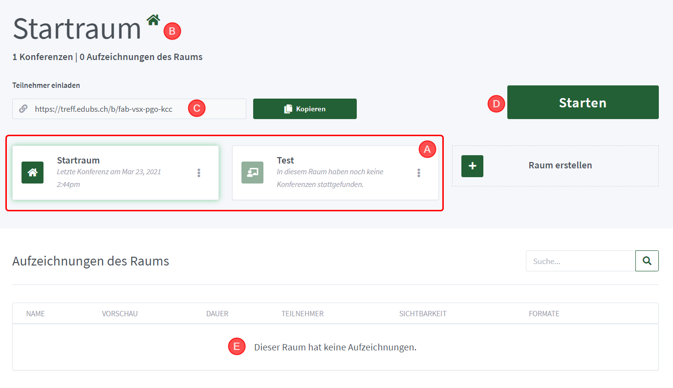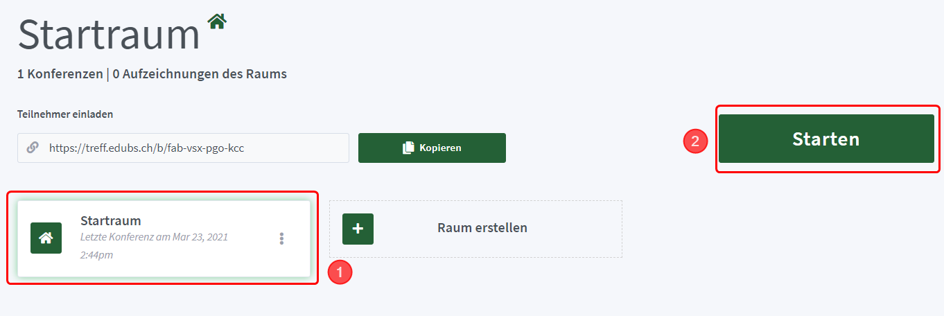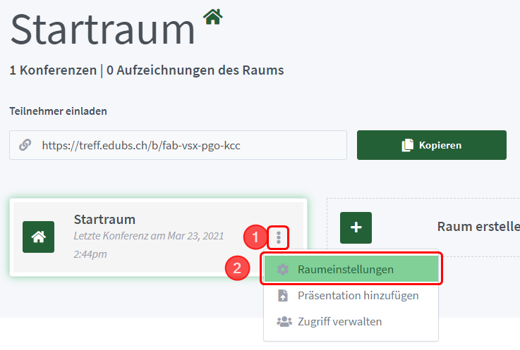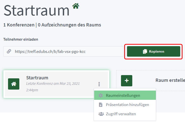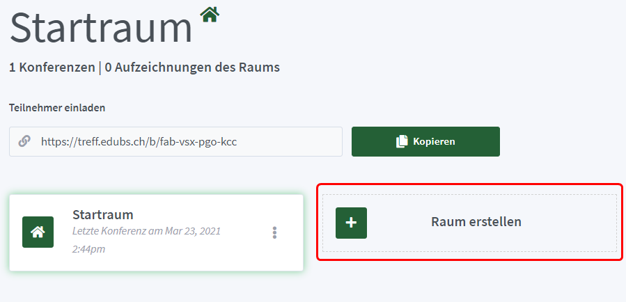 Klicken auf deiner persönlichen Startseite auf «Raum erstellen».