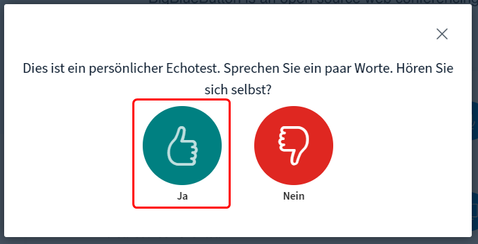 Es wird nach einigen Sekunden ein «Echotest» gestartet. Sprich in diesem Test ein paar Worte. Bestätige mit «Ja», wenn du diese als Echo via Lautsprecher hörst.